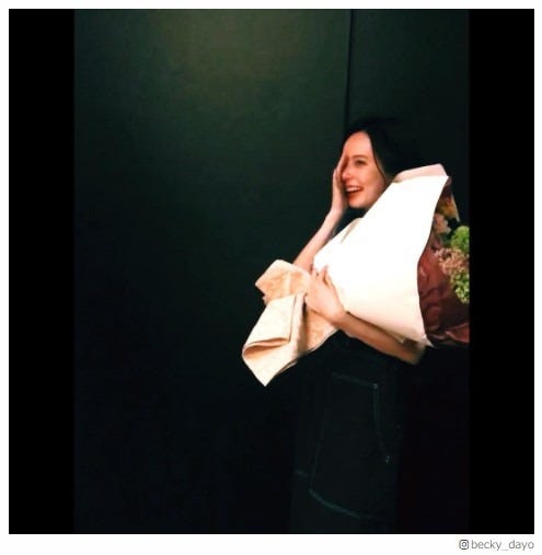 大きな花束を抱えながら幸せそうに涙するベッキー/ベッキーInstagramより