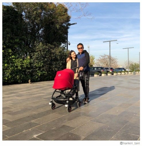 平愛梨とベビーカーを押す長友佑都選手の写真/平愛梨Instagramより