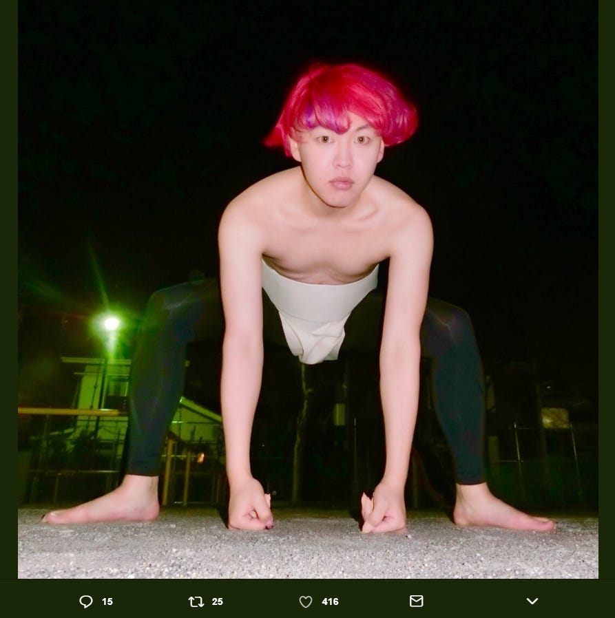 新世代おネエタレントのぺえが19日、自身のTwitterを更新。まわし姿を披露した。