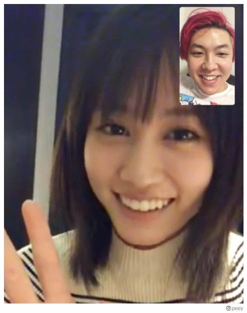 テレビ電話でぺえの誕生日をお祝いする前田敦子/ぺえInstagramより
