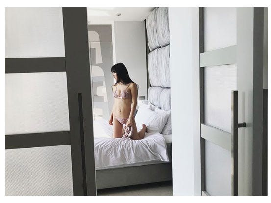 ベッドの上でのランジェリーショットを披露した白間美瑠/白間美瑠Instagramより