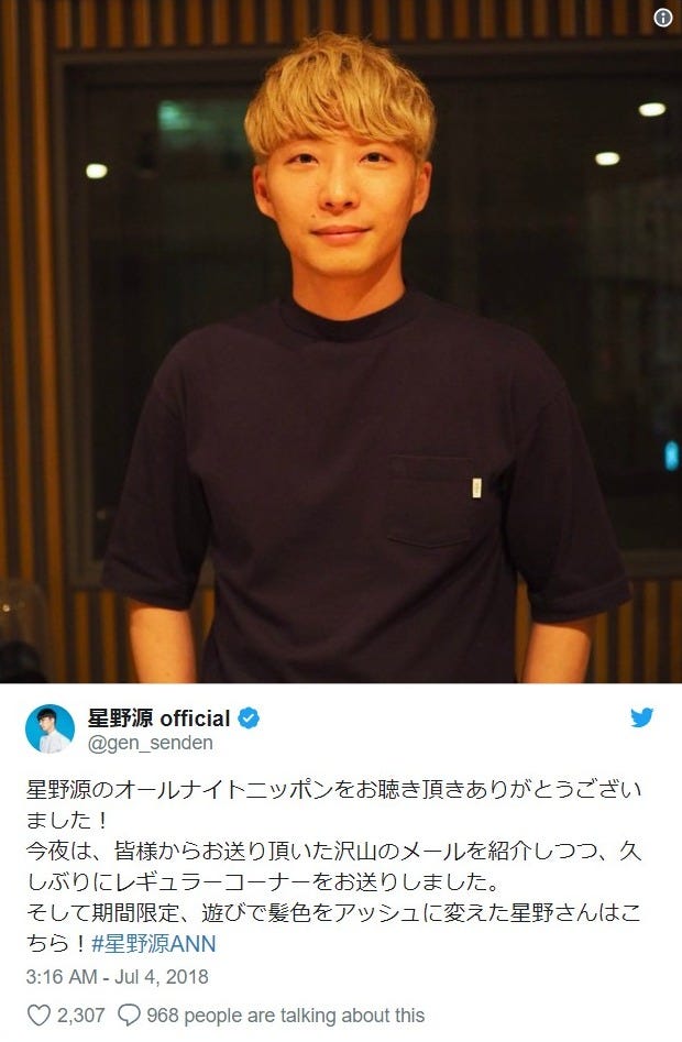 星野源、金髪アッシュに大胆イメチェン「イケメンがすぎる」と絶賛の声