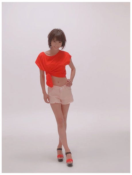 おへそをだした美くびれ&美脚際立つ写真を公開した釈由美子/釈由美子オフィシャルブログ(Ameba)より