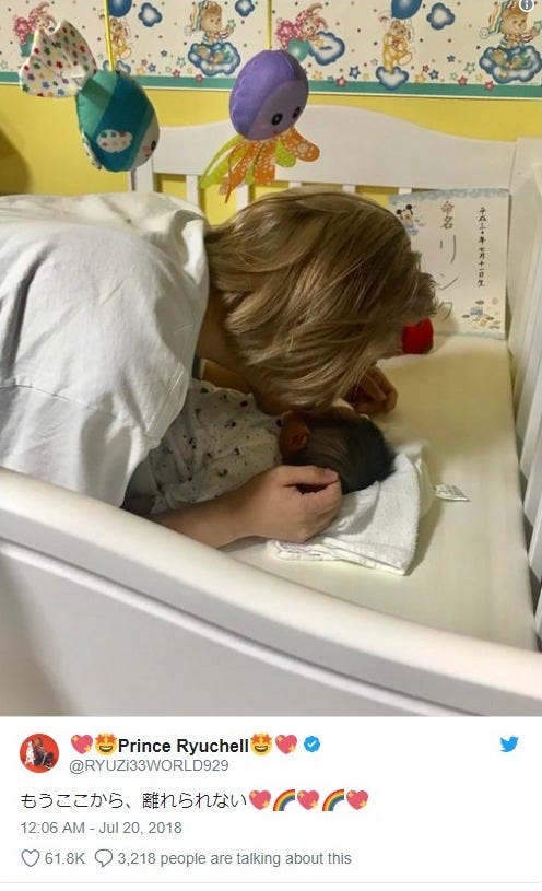 タレントのりゅうちぇるが19日、妻でタレントのぺこ(オクヒラテツコ)の間に誕生した第1子“リンクくん...
