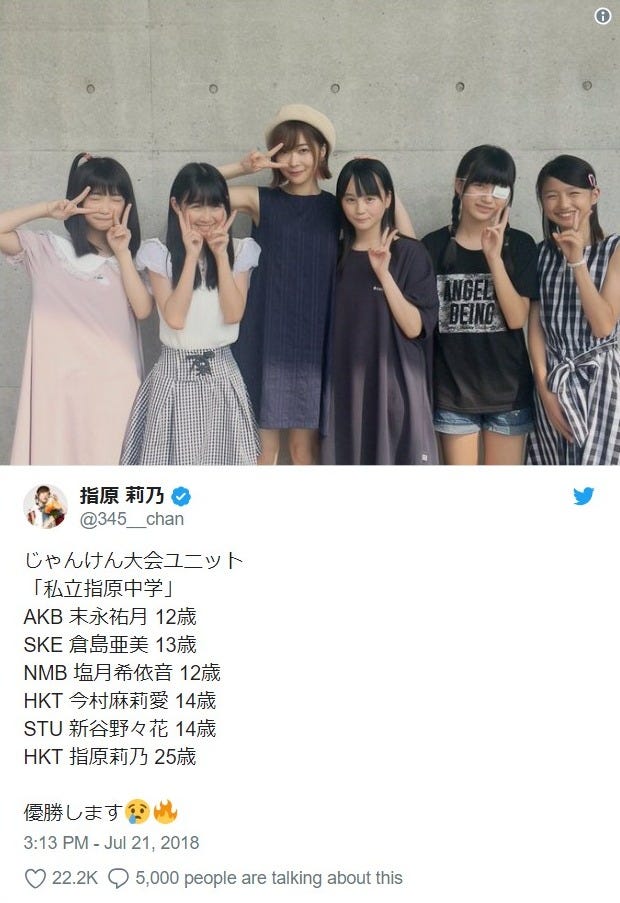 指原莉乃、AKB48じゃんけん大会で「私立指原中学」結成 各グループ精鋭中学生メンバー集結