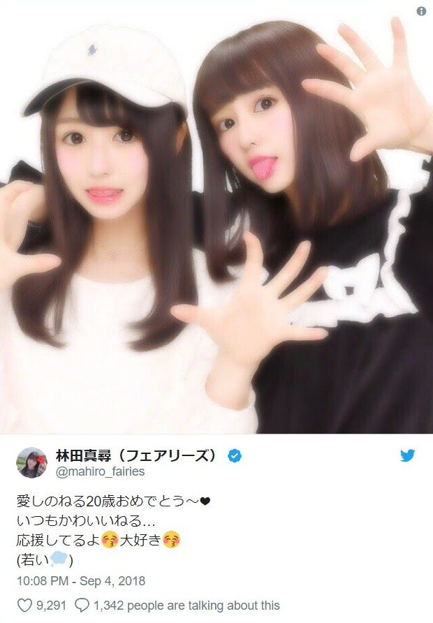 フェアリーズの林田真尋が4日、自身のTwitterを更新。同日に20歳の誕生日を迎えた欅坂46の長濱...