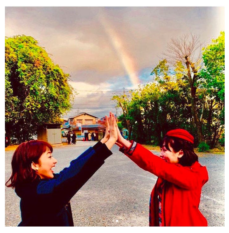 大興奮でハイタッチする平祐奈と福原遥/福原遥Instagramより