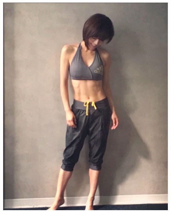 くっきりと割れた腹筋が際立つ釈由美子/釈由美子オフィシャルブログ(Ameba)より