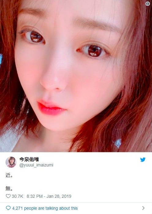 元欅坂46の今泉佑唯が28日、自身のTwitterにてドアップショットを公開し、反響を呼んでいる。