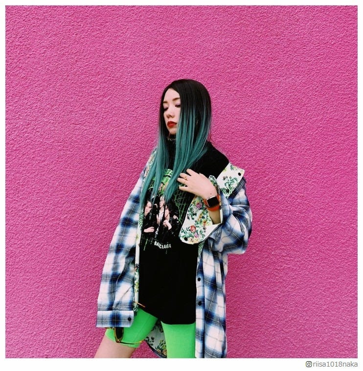 女優の仲里依紗が9日、Instagramにて黒×緑の派手なロングヘアーウィッグをかぶった写真を投稿し...