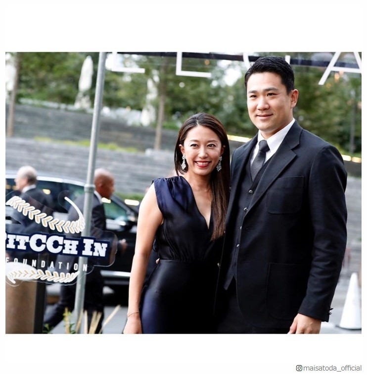 里田まい、胸元大胆黒ドレスで夫・田中将大と2ショット「素敵すぎ」と反響