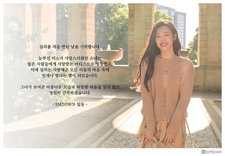 故ソルリさん所属事務所が追悼メッセージ「永遠に大事にします」<全文>