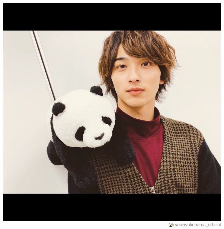 俳優の横浜流星が29日、自身のInstagramを更新。肩にパンダのぬいぐるみをのせた可愛らしいショ...