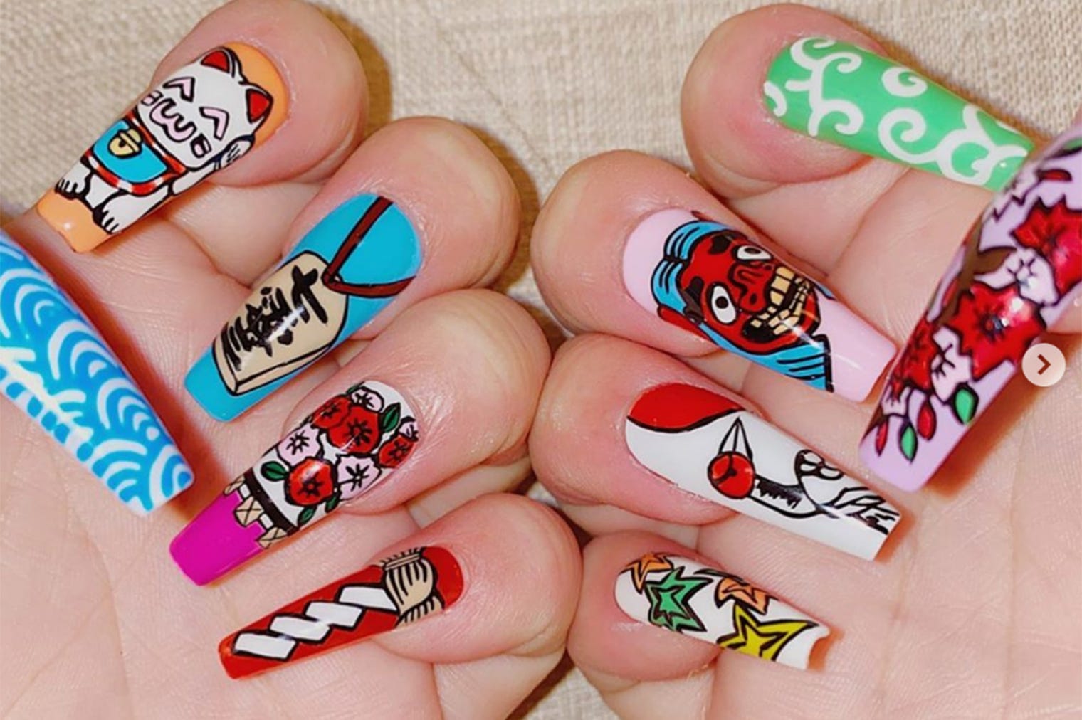 お笑いタレントの渡辺直美が21日、自身のInstagramを更新。斬新な和柄デザインのネイルを披露し...