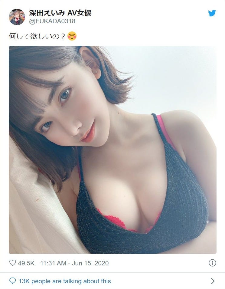 セクシー女優・深田えいみのTwitterがフォロワーの大喜利で連日バズり、話題に。フォロワー数が10...