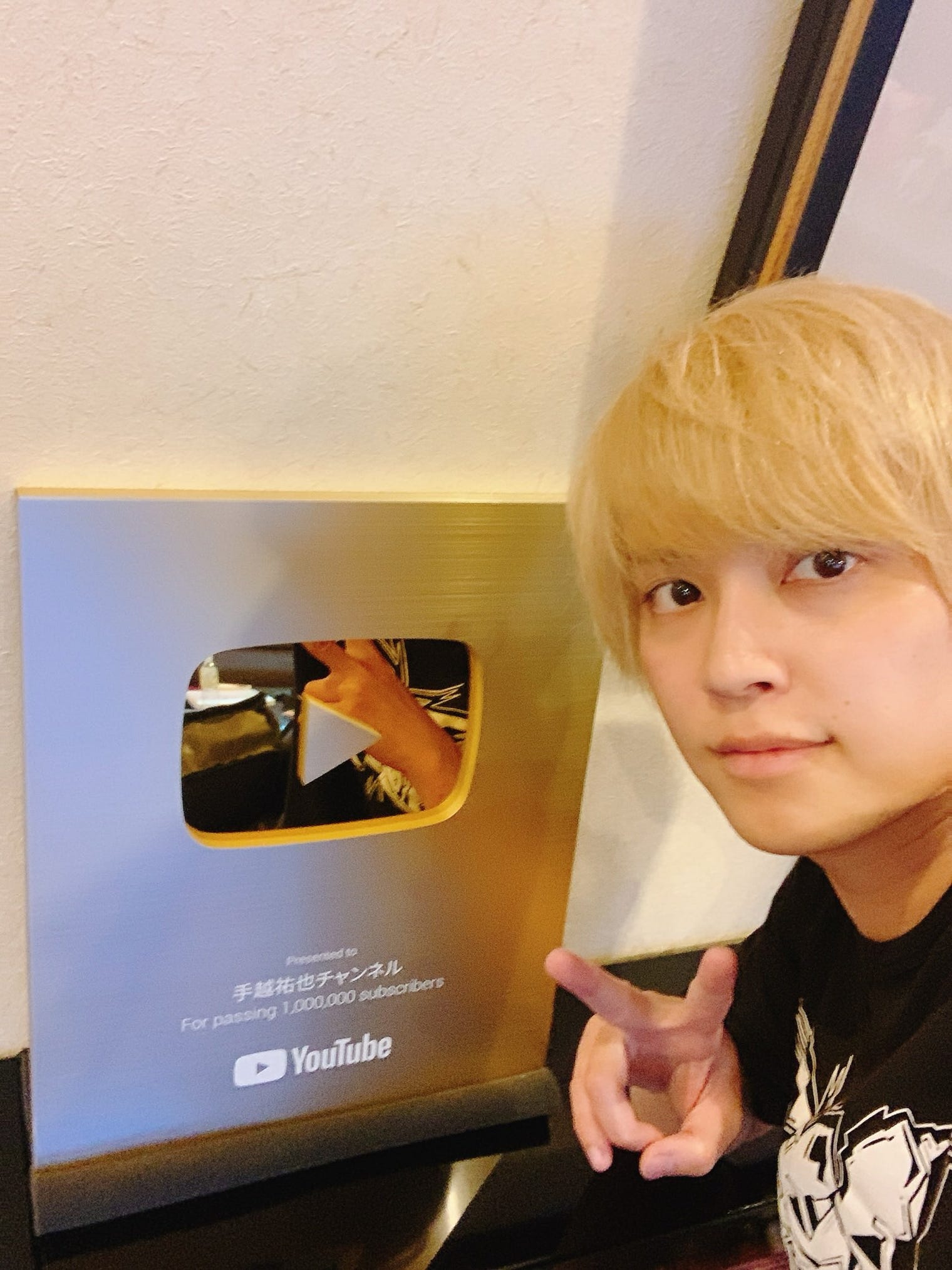 手越祐也、YouTube100万人突破で「金の盾」獲得「みんなのお陰」