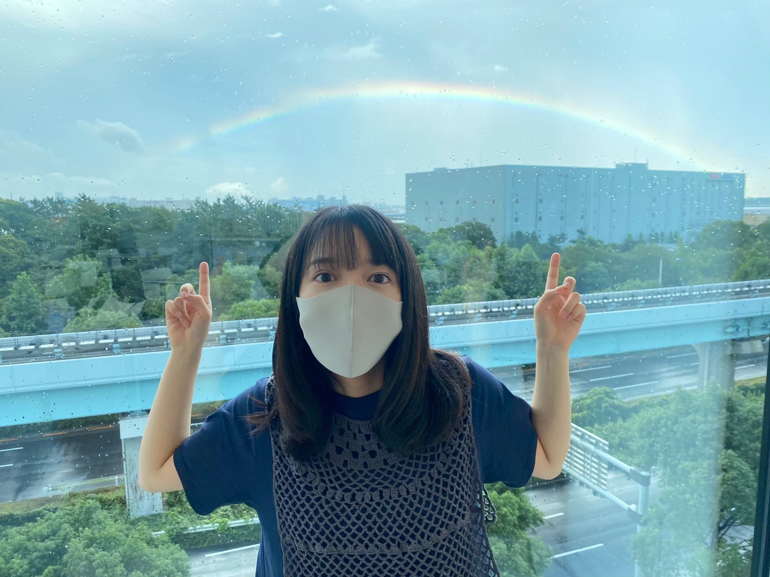 女優の上白石萌音のマネージャーが26日、Twitterを更新。マスク姿の上白石が、空にかかった虹を見...