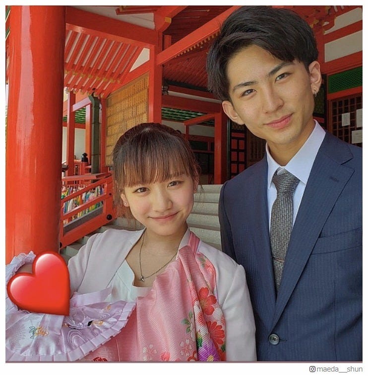 第一子誕生の現役高校生夫婦“しゅんまや”、お宮参りを報告 家族3ショットに反響