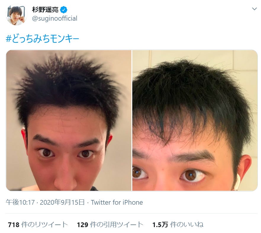 俳優の杉野遥亮が15日、自身のTwitterを更新。短髪姿を公開し反響が寄せられている。