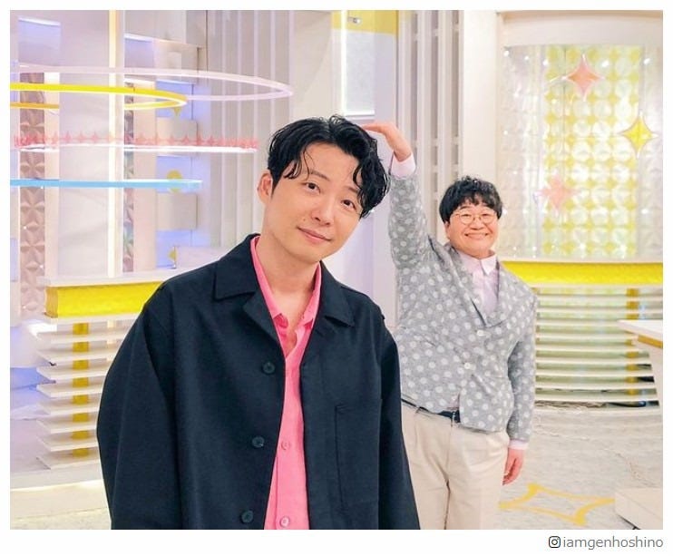 歌手の星野源が自身のInstagramを更新。お笑いコンビ・ハリセンボンの近藤春菜との2ショット写真...
