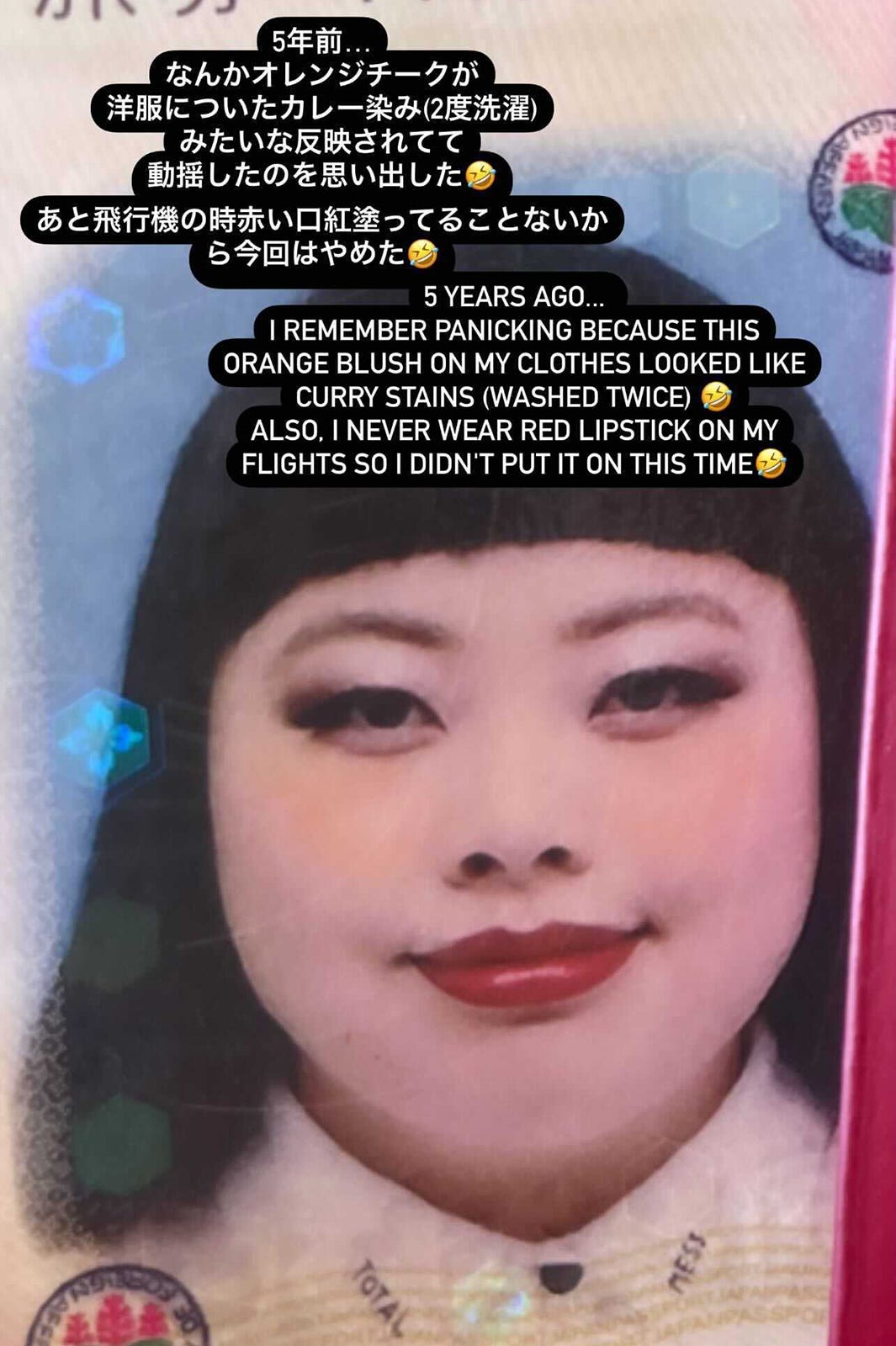 渡辺直美、5年前のパスポート写真公開 オレンジチークが「カレー染みみたい」