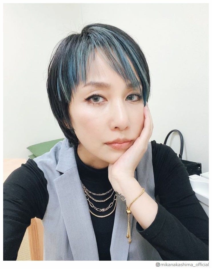 歌手の中島美嘉が15日、自身のInstagramを更新。髪をショートカットにし、前髪にブルーのハイラ...
