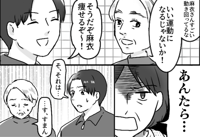 「痩せるぞ~」動き回る嫁を、夫と義父が“小バカ”に!しかし直後⇒義母の【一撃】で、2人揃って撃沈!?