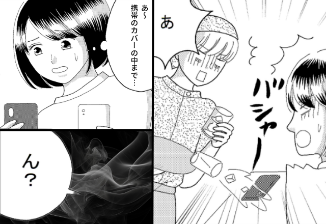 彼の携帯に飲み物が【バシャー】!すぐに彼女が拭こうとすると⇒「ん?」携帯カバーの裏に、“彼の恐ろしい秘密”が!?