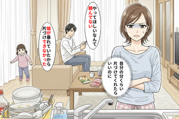 食器を片づけない理由を…“娘のせい”にする夫!?翌朝⇒妻は怒りが収まらず【小さな反撃】を仕掛けた結果。