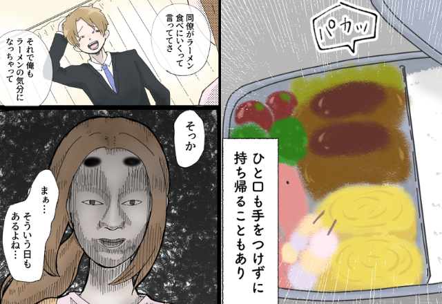 “ラーメンの誘惑”に負けた夫が弁当を全残し!?【まぁ…そう…】夫に寄り添う嫁が⇒サッと賢明な判断を下した話。
