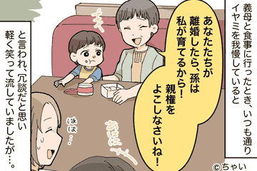 「離婚したら親権は渡して(笑)」義母の“冗談”に呆れる嫁。しかし1年後、恐ろしい【義母の本性】を知り背筋がゾッ…