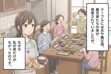 義実家で初めての食事会。しかし“嫁の席だけ”用意はなし。帰宅後「立たされっぱなしの嫁」が夫に“助け”を求めた話