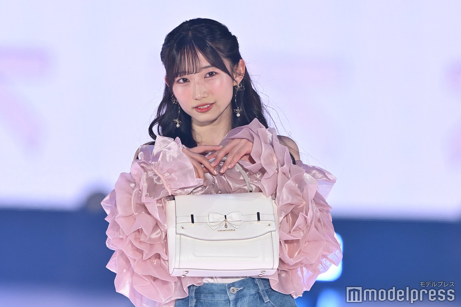 SKE48野村実代、頬のリボンに視線集中 ミニスカセットアップでガーリーに【GirlsAward 2025SS】