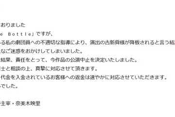 いしだ壱成ら出演舞台、突如中止発表 劇団代表の不適切な指導で演出家降板【全文】