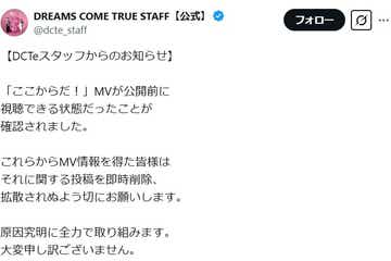 ドリカム、公開前MVが視聴可能状態に 関連投稿削除要請「原因究明に全力で取り組みます」