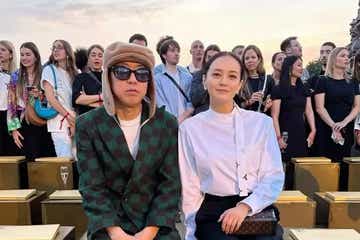 牧瀬里穂、ミニスカでスラリ美脚&夫・NIGO(R)との夫婦ショット披露「ラブラブで羨ましい」の声