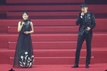 「変わらず可愛いなぁ」Jリーグ表彰式 司会の美人キャスターが感謝 巨人の元人気チア、黒のドレス姿で輝く