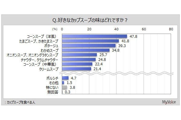 カップスープの好きな味ランキング。1位は「コーンスープ(洋風)」、若い女性に人気なのは?