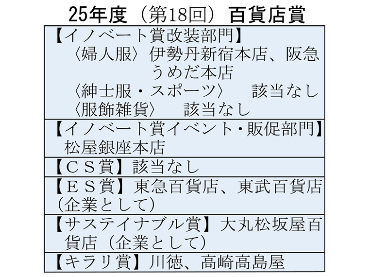 繊研新聞社主催「25年度百貨店賞」 各部門に8店・企業を選出