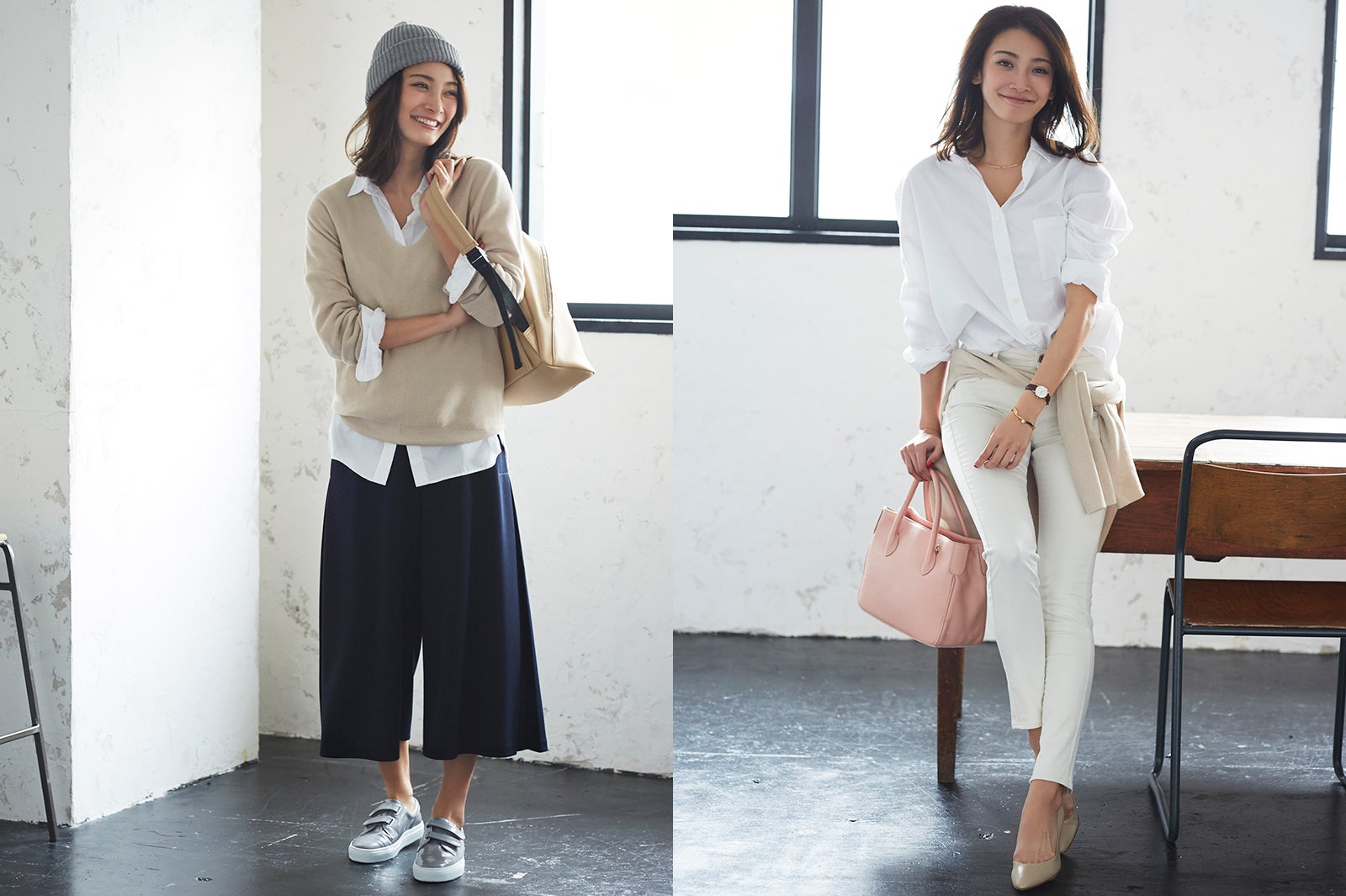 色っぽベージュは“ピタッ”or“ふわっ”どう着こなす?
