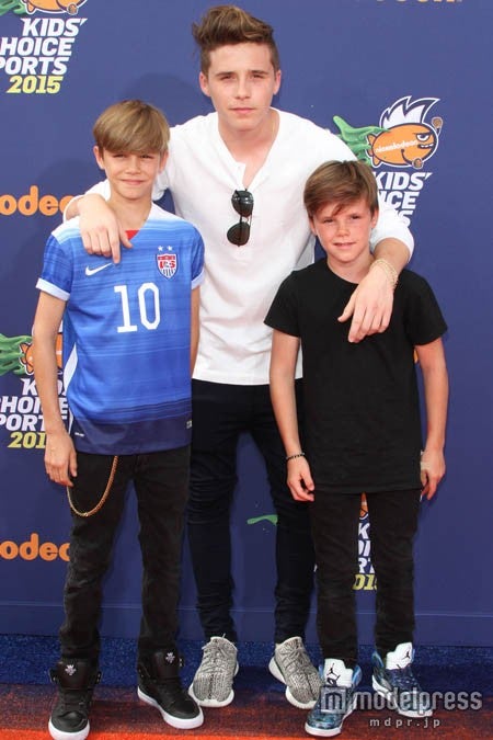 ベッカム家のイケメン息子たち、米国女子サッカーの美人GKとポーズ