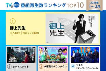 TVer、25年1月〜3月番組再生数ランキング発表 日曜劇場「御上先生」が総合1位