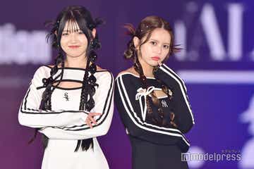 元AKB48村山彩希、奇抜ヘア×胸元開きワンピで登場 吉崎綾とペアランウェイ【ガルアワ2025AW】