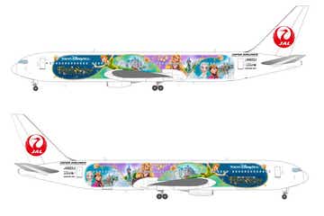 「ファンタジースプリングス」特別塗装機、JAL国内線で運行 アナやラプンツェルらデザインのジェットが空へ