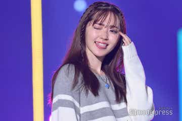 鈴木愛理、舌ペロ&ウインクで悩殺 ニットミニワンピから美脚披露<TGC 2022 A/W>
