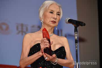 カルーセル麻紀、胸元ざっくりドレス姿披露 “男女縛りなし”ジェンダーレス開催への思い語る【第79回毎日映画コンクール】