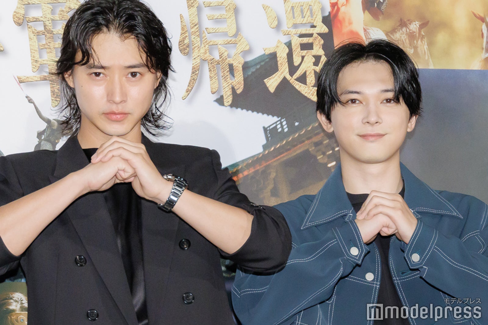 山崎賢人&吉沢亮、“撮影タイム終了後”も笑顔で肩組み 司会からツッコミ飛ぶ【キングダム 大将軍の帰還】