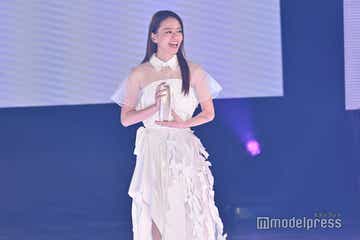 乃木坂46与田祐希、美デコルテ際立つワンピ姿 ウィンク&投げキスが悶絶級【GirlsAward 2024 S/S】