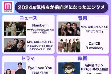2024年「気持ちが前向きになったエンタメ」発表 Number_i・Mrs.GREEN APPLE・ドラマ「Eye Love You」…吉沢亮・山下美月の“夢を叶える秘訣”も【モデルプレス独自調査】