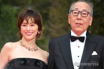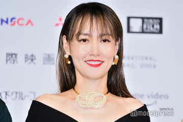 米倉涼子、オフショルドレスで美デコルテ大胆披露 エスコートに満開の笑顔【第37回東京国際映画祭】
